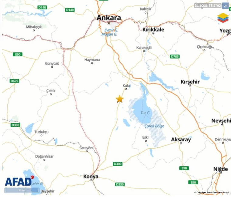 Afet ve Acil Durum Yönetimi Başkanlığı (AFAD), merkez üssü Konya'nın Kulu ilçesi olan 4.2 büyüklüğünde bir deprem meydana geldiğini duyurdu.