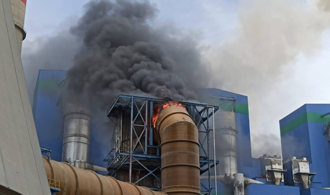 Kahramanmaraş merkezli 6 Şubat'taki depremlerden etkilenen ve 10 Mayıs'ta yapılan bakım ve onarım çalışmalarının ardından yeniden üretime başlayan Afşin-Elbistan B Termik Santrali'nde çıkan yangına itfaiye ekiplerince müdahale ediliyor.