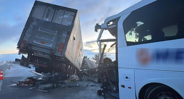 Ankara yönüne giden ve sürücüsü ile plakası öğrenilemeyen bir yolcu otobüsü, Afyonkarahisar'ın Emirdağ ilçesinin Topdere mevkiinde bir çekici ve otomobille çarpıştı.