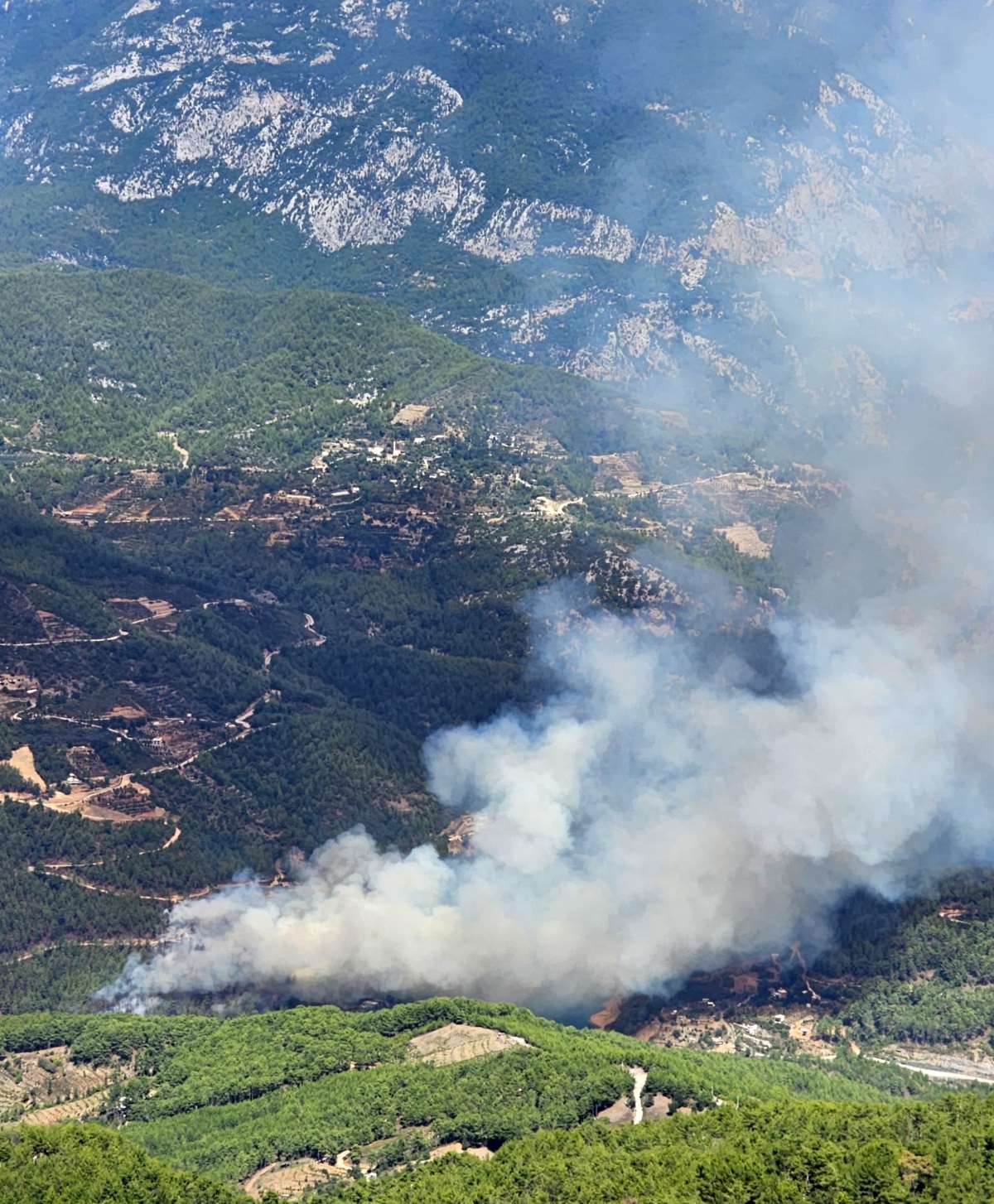 Bölgede yer yer rüzgarın da etkili olduğu ve seyrek şekilde dağılmış yerleşim yerlerinin de bulunduğu gözlemlendi. Ekipleri kontrol altına aldığı bazı noktalarda yeniden alevlerin yükseldiği görüldü.