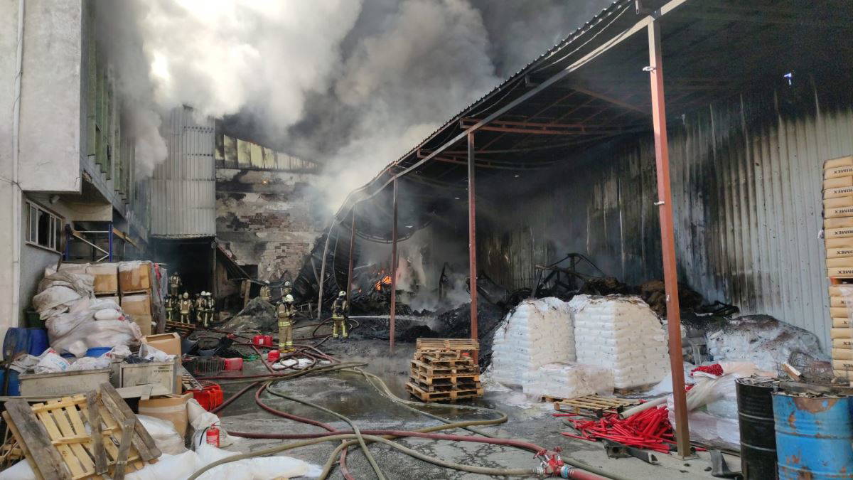 Alev alev yanan fabrikadaki yangının bitişikteki 2 fabrikaya sıçradığı belirtildi. Polis çevrede geniş güvenlik önlemleri aldı. Yangın ve söndürme çalışması havadan da görüntülendi.