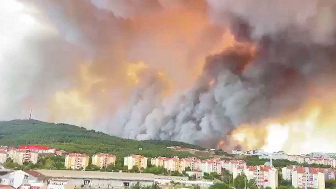 Karadan da ekipler yangına müdahaleye devam ediyor.