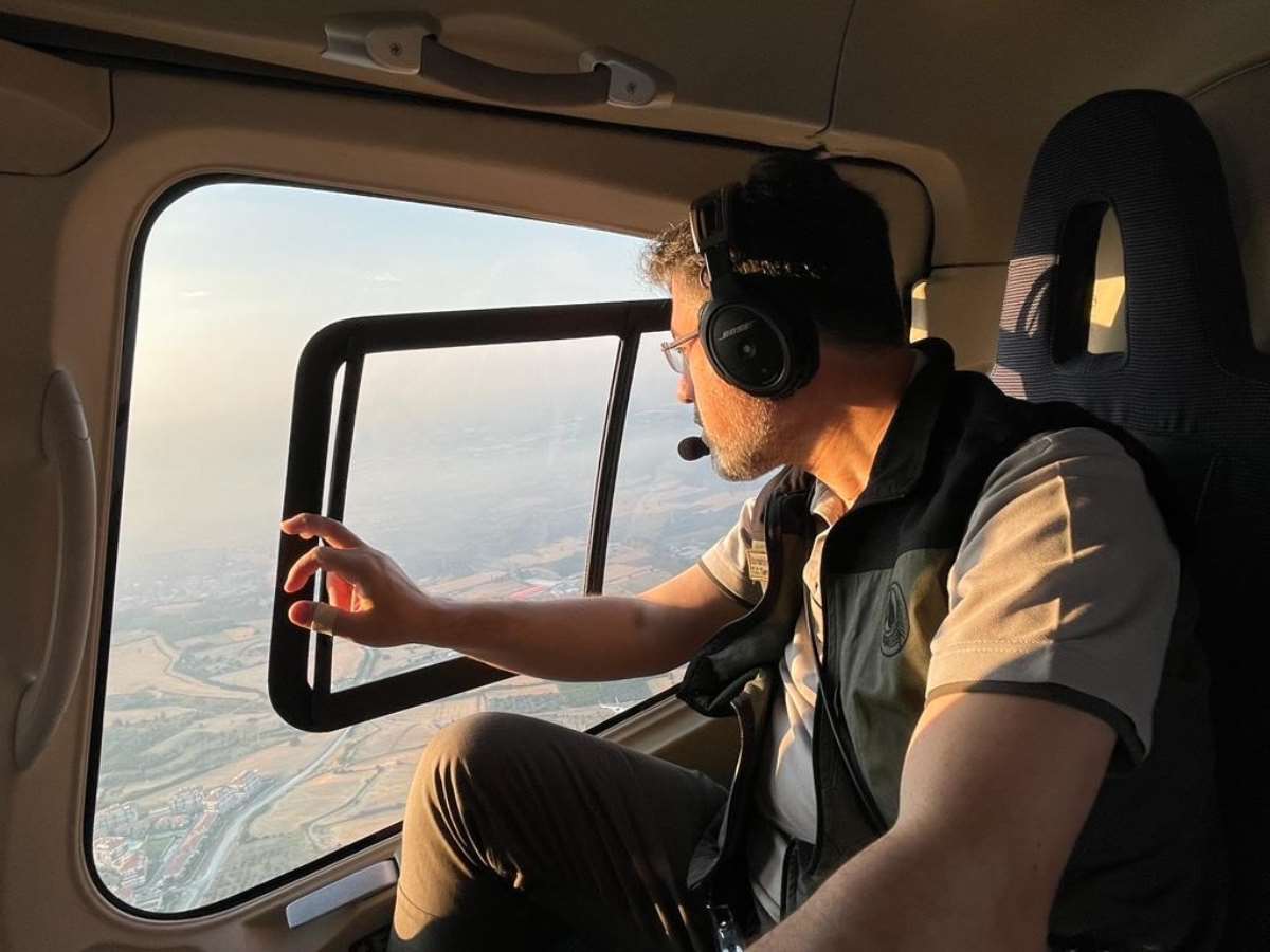 Dün gece bölgeye gelen Tarım ve Orman Bakanı İbrahim Yumaklı, yaklaşık 1500 hektar alanın etkilendiği orman yangının, havanın aydınlanmasının ardından helikopter ile havadan inceledi.