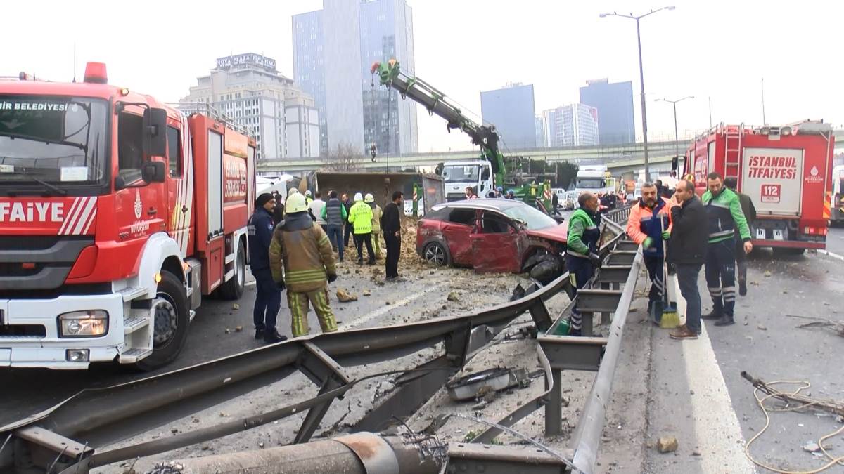 Kaza saat 09.00 sıralarında Basın Ekspres Yolu Başakşehir istikametinde meydana geldi. Edinilen bilgiye göre hafriyat yüklü 34 AJ 6691 plakalı kamyon şoförünün direksiyon hakimiyetini kaybetmesi sonucu seyir halindeki 34 CMR 688 plakalı otomobile çarparak devrildi.