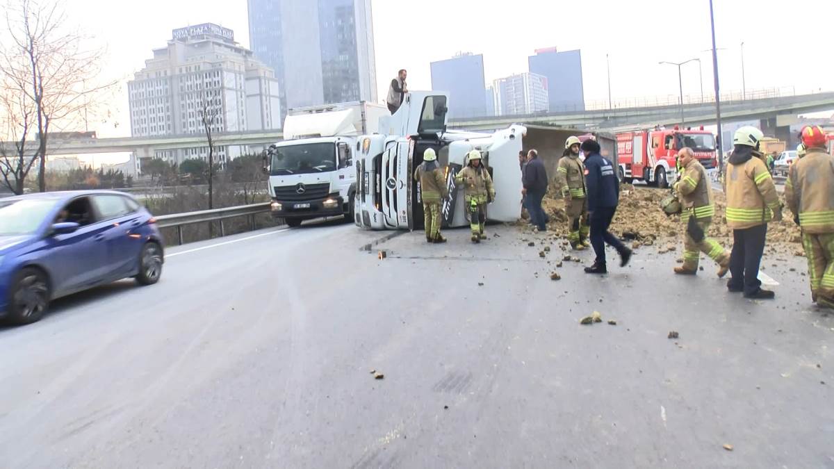 Bu sırada 34 ZM 504 plakalı başka bir hafriyat yüklü kamyon da kazayı görünce kaçmaya çalışırken yol kenarındaki bariyerlere çarparak devrildi.