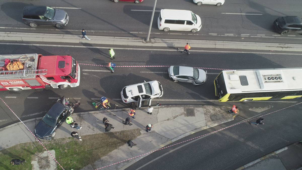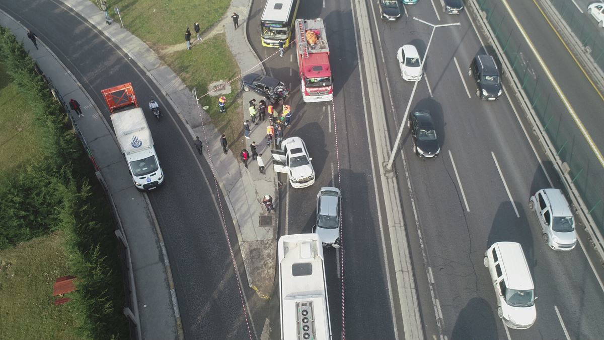Yaklaşık 1,5 saat trafiğe kapalı olan yan yol kazaya karışan araçların çekiciyle kaldırılması sonrası yeniden trafiğe açıldı. Kaza bölgesi havadan da görüntülendi.