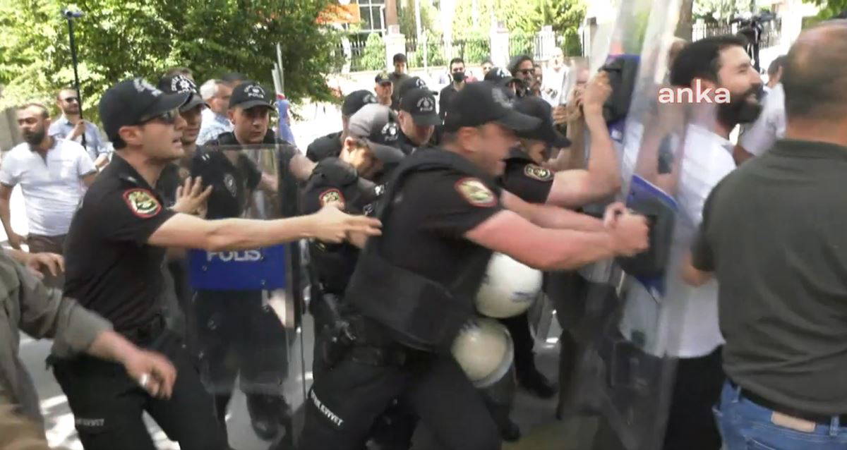 Görüntü almak isteyen gazetecilerin de engellendiği müdahalede, "Direne direne kazanacağız" sloganları atıldı.