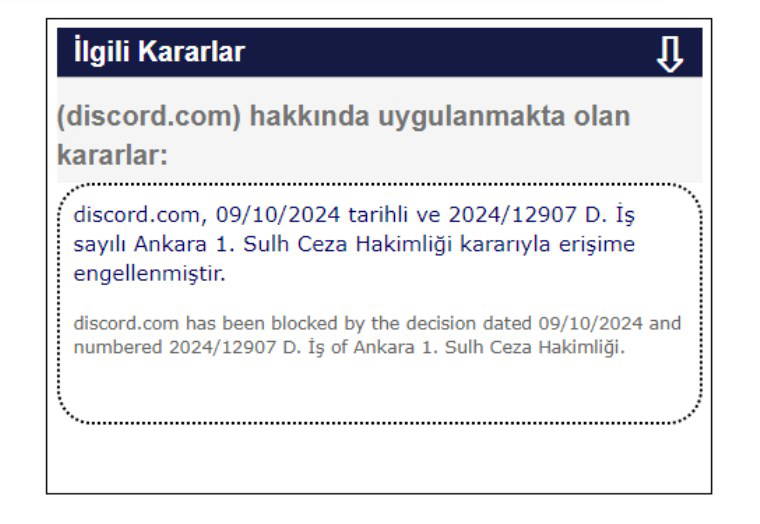 Ankara 1. Sulh Ceza Hakimliği kararıyla sosyal medya platformu Discord'a erişim engeli getirildi.