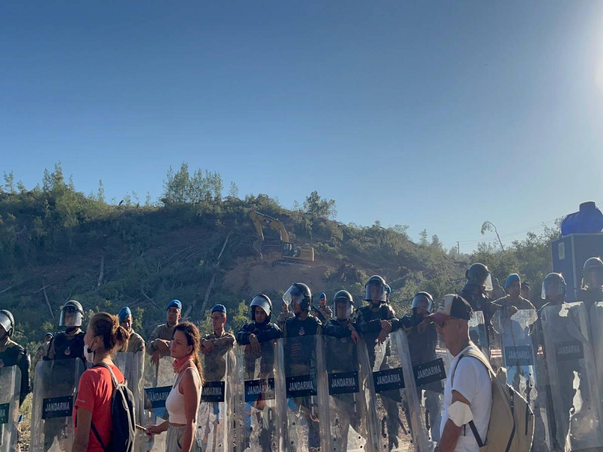 Anayasanın istisna tanımayan bu emredici maddesine rağmen 24.07.2023 tarihinde kesim işlemi başlatılmış ve Anayasaya aykırı olarak başlayan bu orman kıyımına karşı sözünü söyleyen, karşı duran görevini yapan yurttaşlara Muğla Valisinin sorumluluğunda ve talimatında cebir kullanılarak yurttaşlar gözaltına alınmış ve orman kesim işleminin sürdürülmesi sağlanarak Anayasal suç ısrarla işlenmeye devam edilmiştir.
