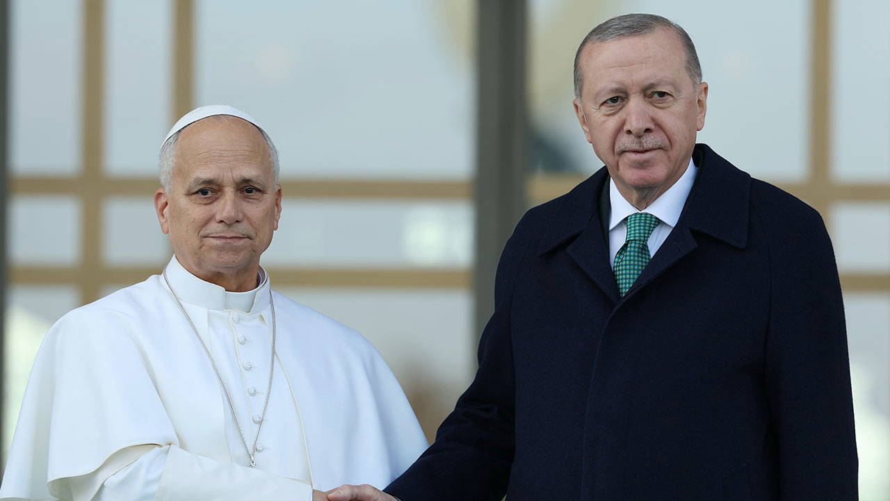 AKP'li Cumhurbaşkanı Recep Tayyip Erdoğan, Vatikan Devlet Başkanı Papa 14. Leo ile Ankara'da görüştü. Beştepe'de Saray'daki görüşme, yaklaşık yarım saat sürdü. Görüşmelerin ardından AKP'li Cumhurbaşkanı Erdoğan ve Papa 14. Leo, Millet Kütüphanesi'ndeki Cihannüma Salonu'nda davetlilere hitap etti.