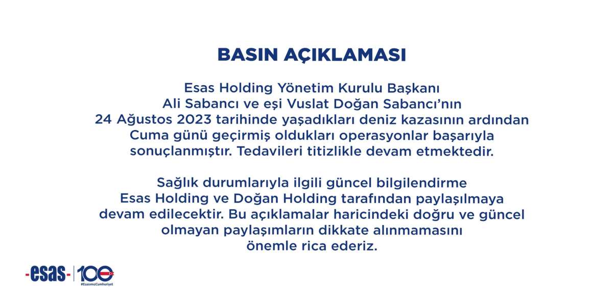 Esas Holding'den saat 13.39 itibarıyla yapılan son açıklamada Sabancı çiftine