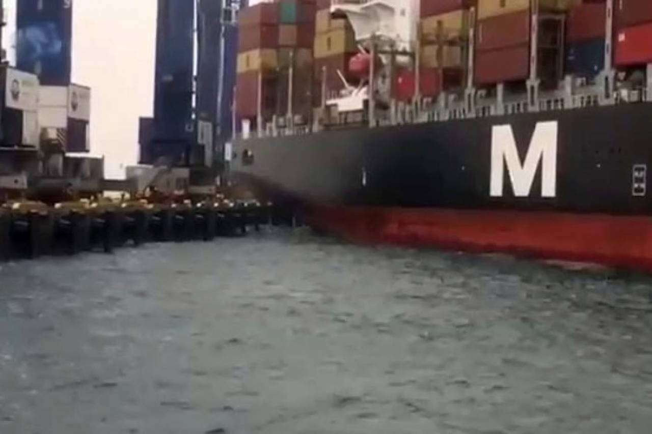 Avcılar'da Ambarlı Limanı'nda şiddetli lodos nedeniyle sürüklenen yük gemisi iskeleye çarptı.