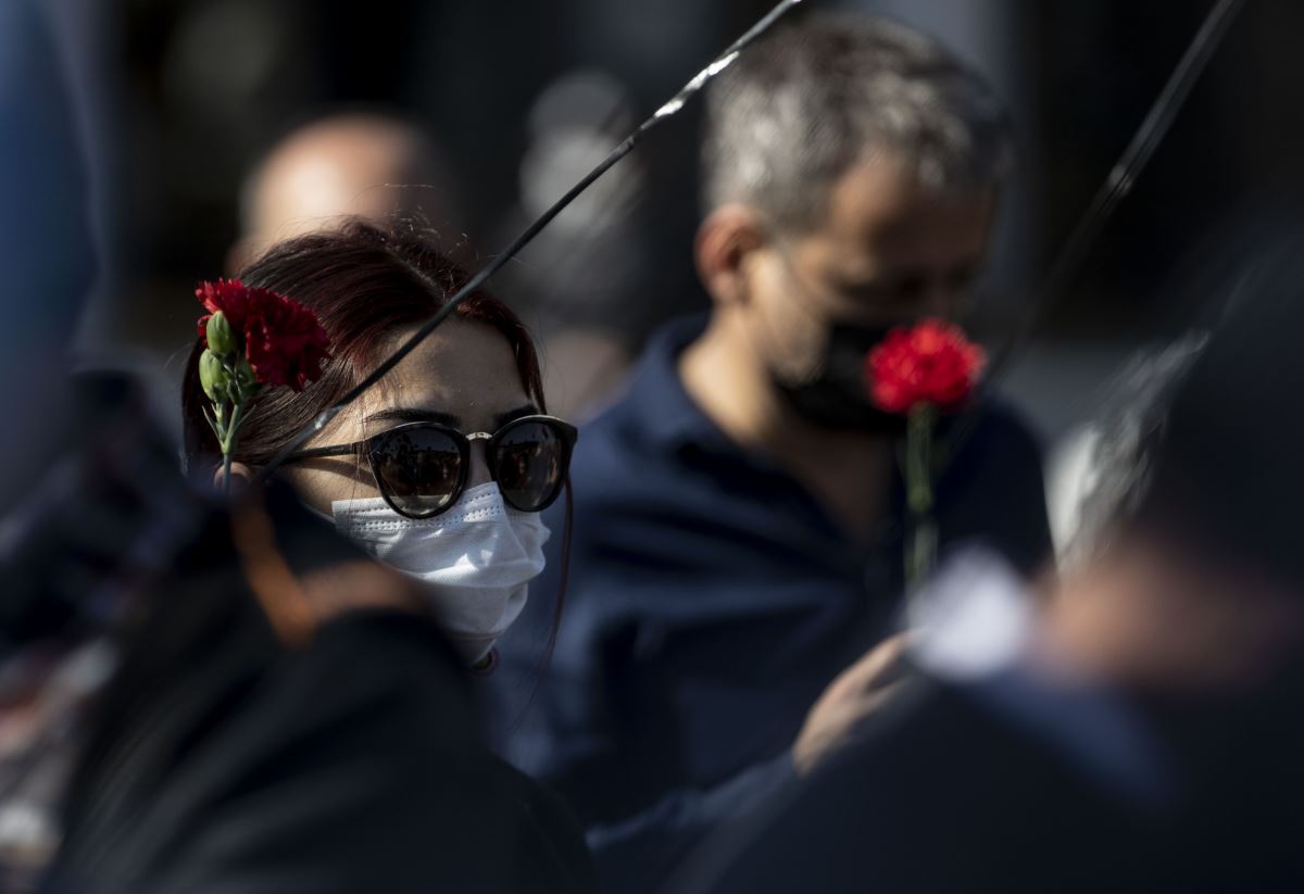 Konuşmaların ardından siyah balonlar havaya uçuruldu, 10 Ekim’de ölenlerin fotoğraflarının olduğu geçici anıta karanfiller bırakıldı.