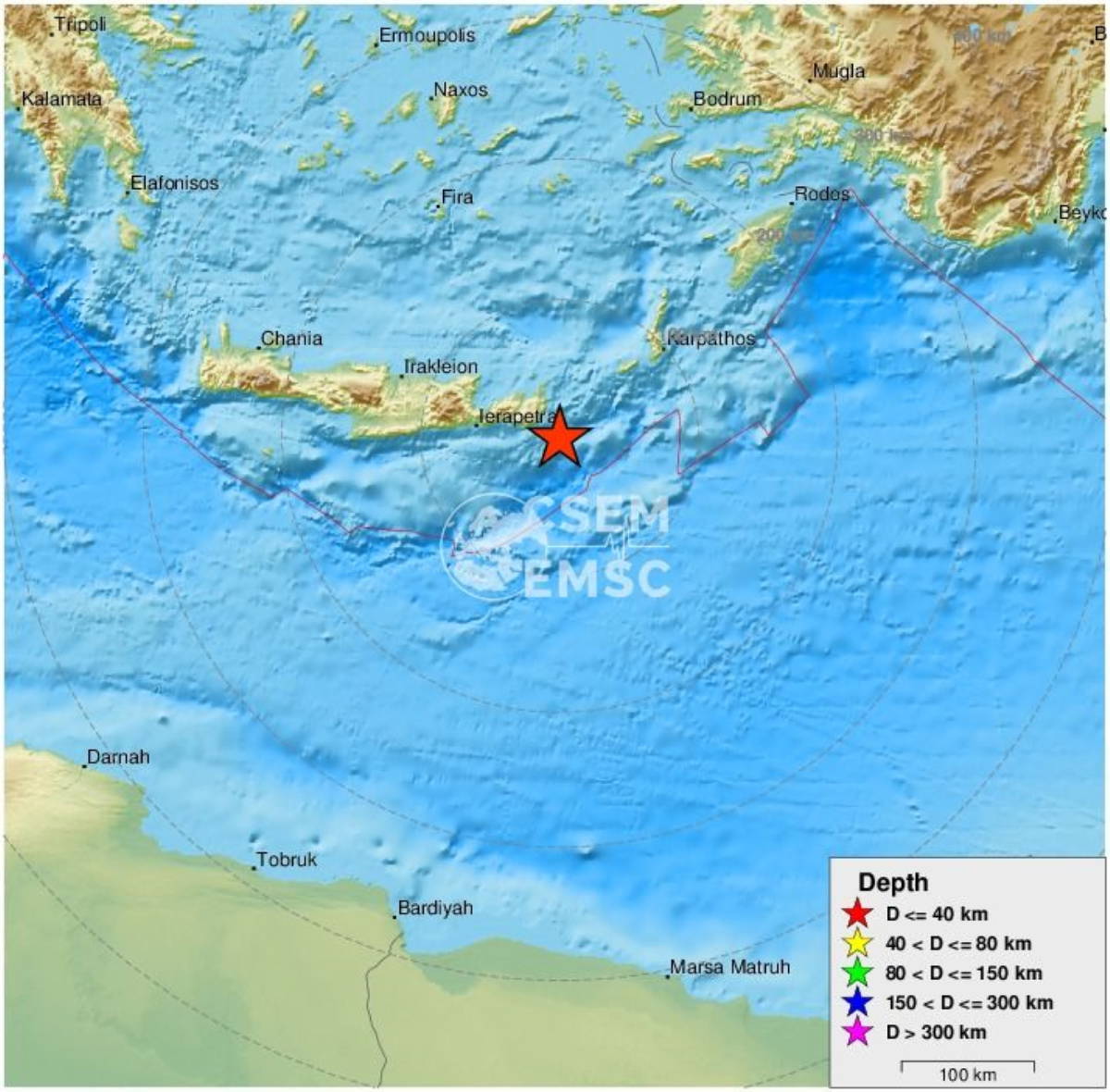 Sarsıntının merkez üssü, Girit'in güneydoğusundaki Sitia'ya 51 kilometre mesafede.