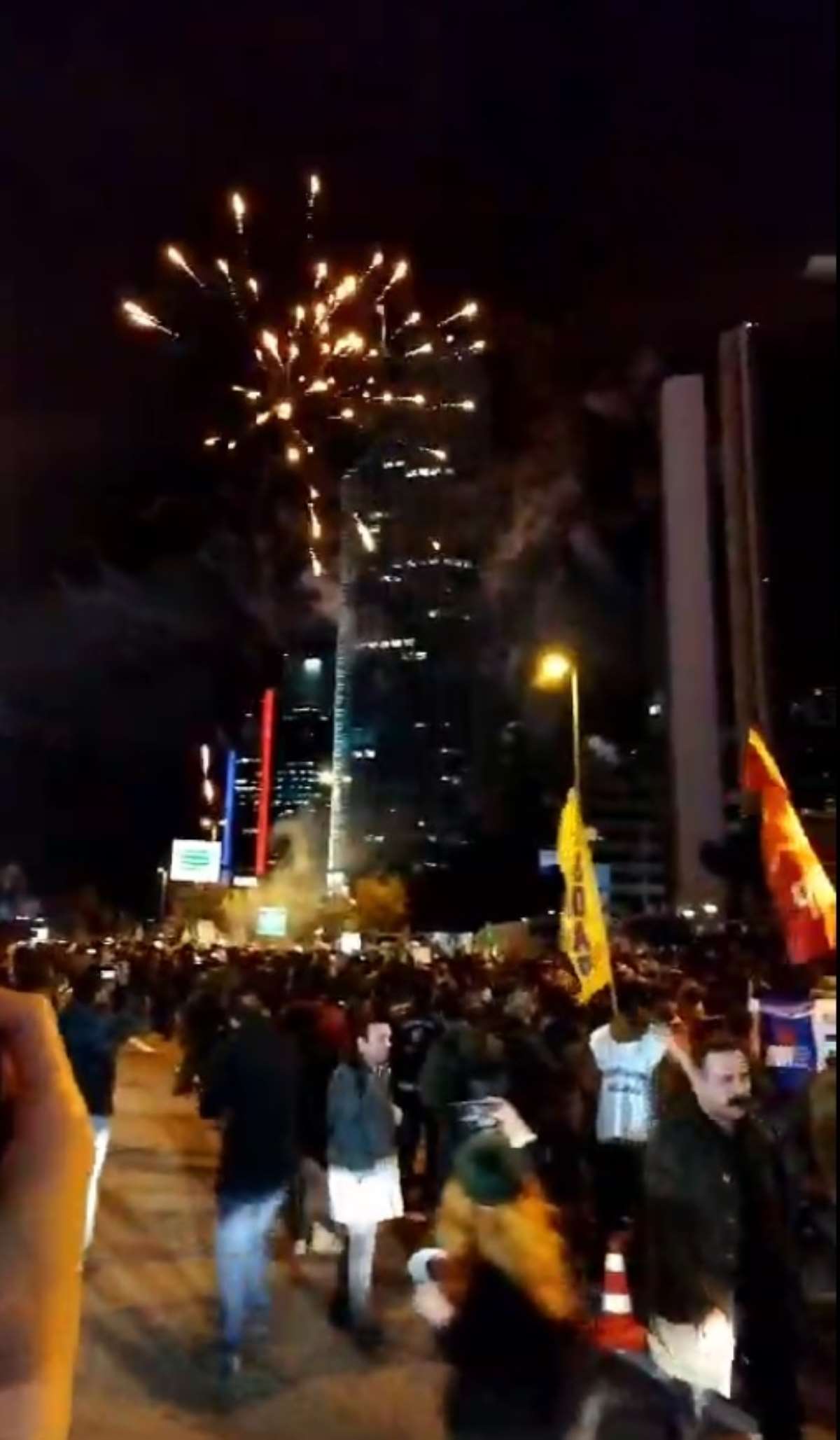 Protesto sırasında İslamcı grupların olduğu noktadan İsrail Konsolosluğu'nun olduğu binaya doğru havai fişekler atıldı. O anlar kameraya yansıdı.