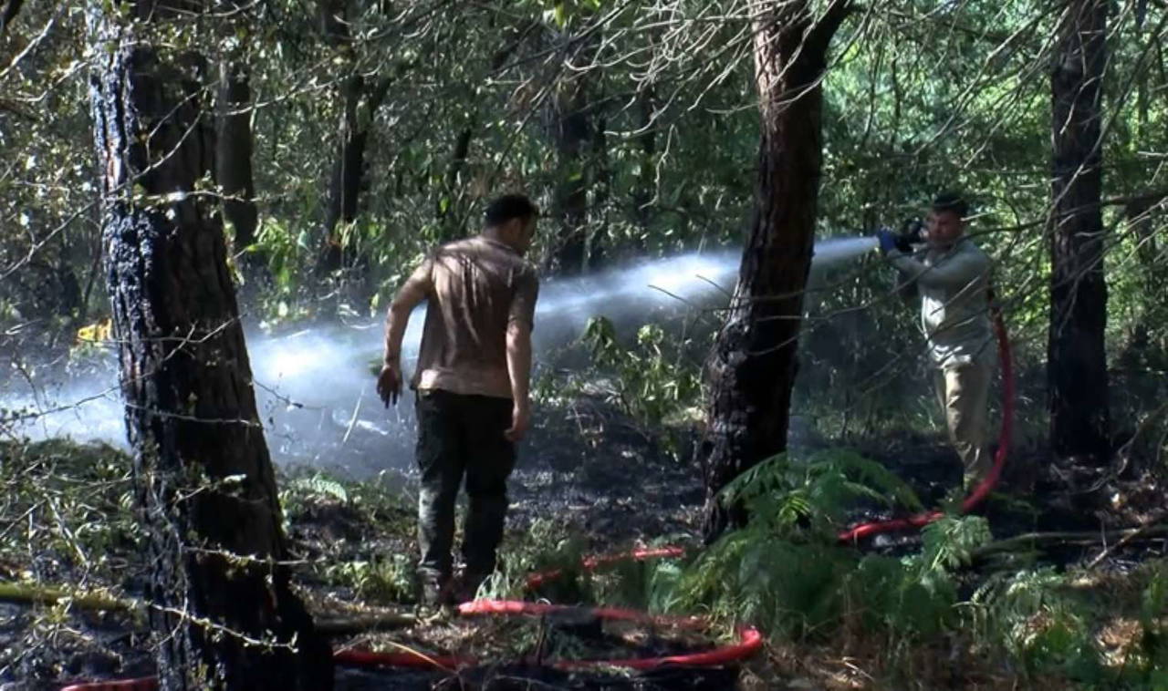 Aynı saatlerde Pirinççi Yolu üzerindeki ağaçlık alan da yangın çıktı.