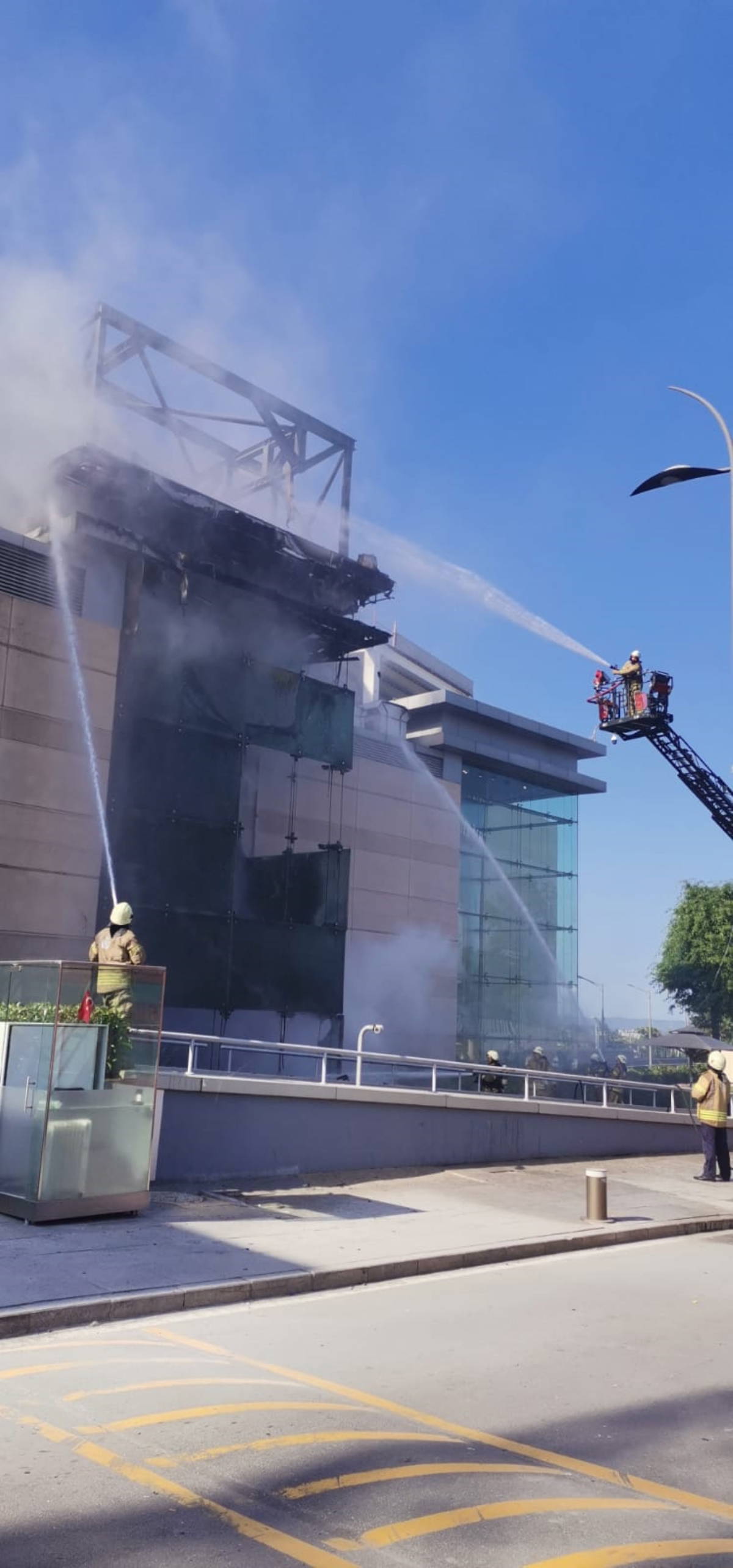 Alışveriş merkezinin üst katında devam eden inşaat sırasında kaynak yapılırken çıkan yangında, dış cepheyi saran alevlere müdahale için çok sayıda itfaiye ekibi sevk edildi.