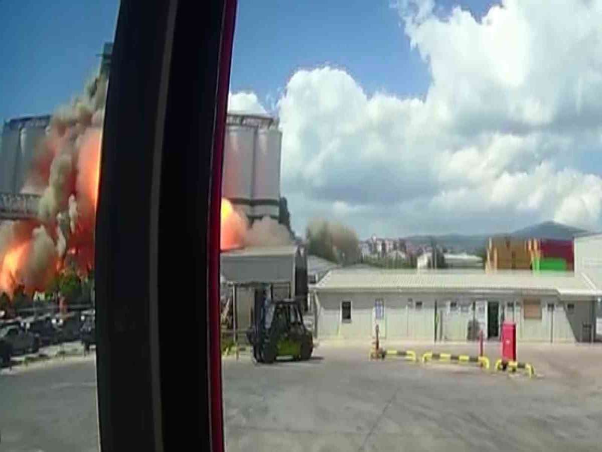 Kocaeli’nin Derince ilçesinde TMO silosundaki patlama anı, güvenlik kamerasına yansıdı.