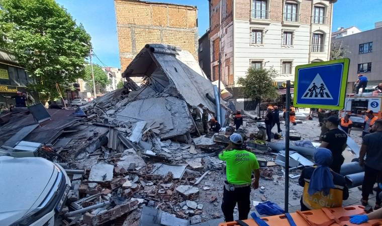 Öte yandan, çöken bina park halindeki araçların üzerine yıkılırken, yoldan geçen belediye otobüsünde de hasar oluştu.