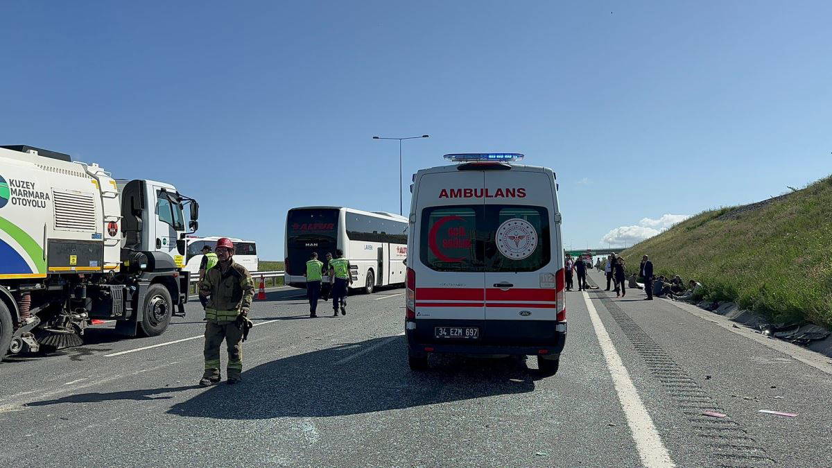 Kuzey Marmara Otoyolu Çatalca istikameti Yassıören mevkiinde Türk Hava Yolları'na ait işçi servisinin de aralarında bulunduğu zincirleme kaza meydana geldi.