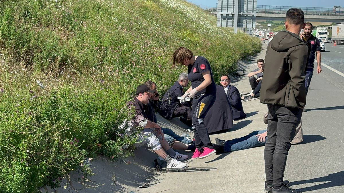 Kazada çok sayıda kişi yaralandı. Trafiğin tek şeritten devam ettiği öğrenildi.
