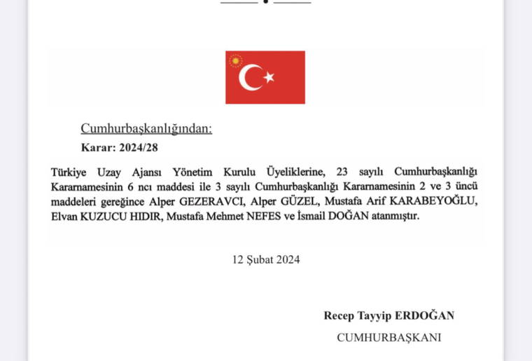 Resmi Gazete’de yayımlanan atama kararlarına göre Türkiye’nin ilk astronotu Alper Gezeravcı Türkiye Uzay Ajansı Yönetim Kurulu üyeliğine atandı.