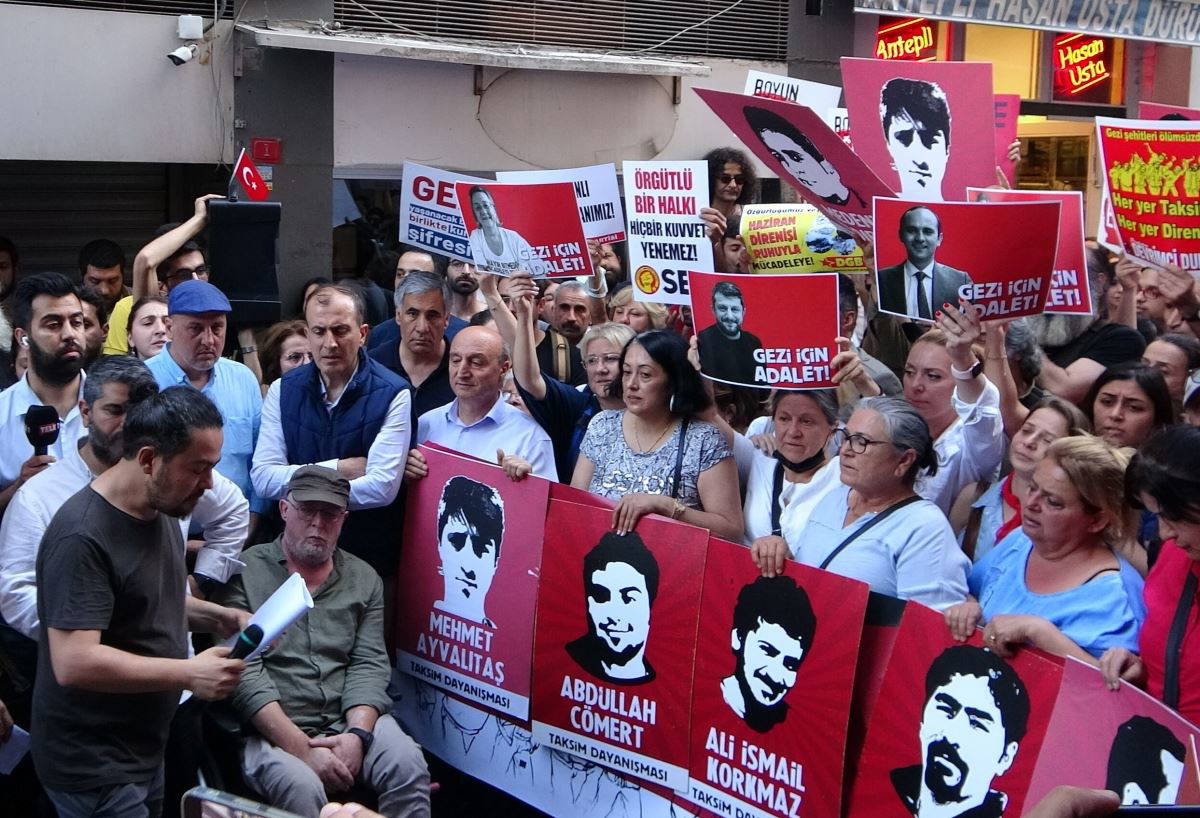 Eylemlerde yaşamını yitirenlerin isimleri okunarak “Burada” denildi. Gezi Parkı davası kapsamında tutuklananların da ismi okunarak “Adalet” diye haykırıldı.