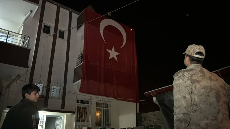 Şehidin ailesinin evine Türk bayrağı asıldı. Serkan Sayin'in 5 kardeşinin olduğu, abisinin de astsubay olarak görev yaptığı öğrenildi.