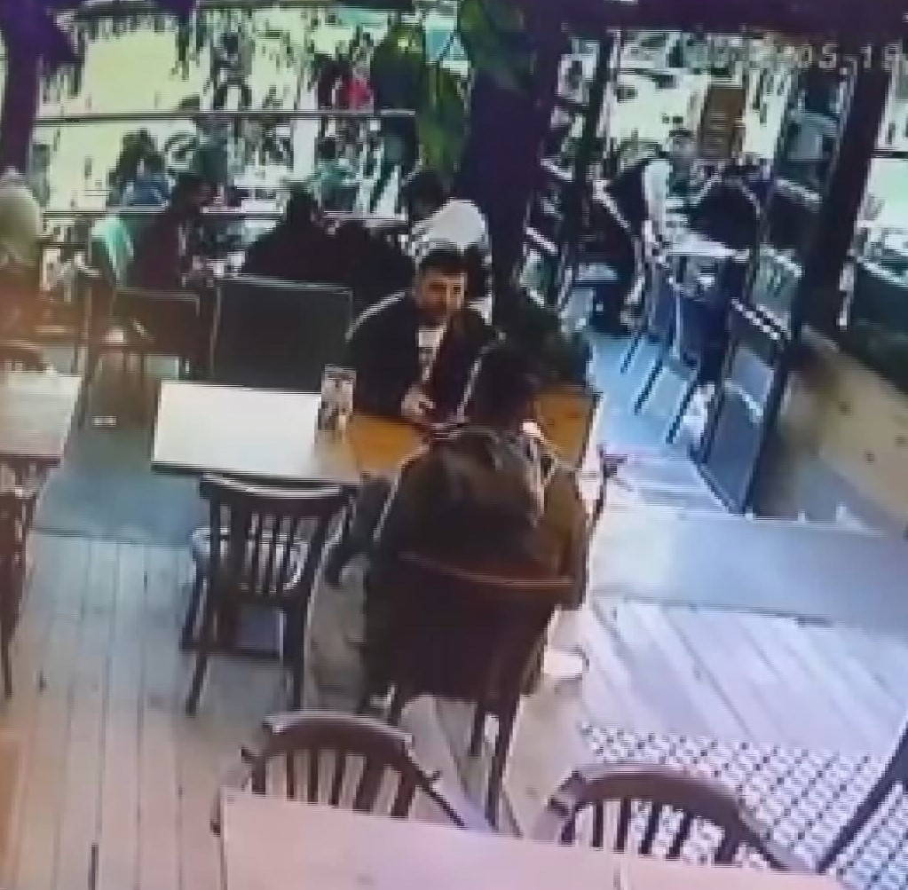 Yaşananlar ise iş yerinin güvenlik kamerasınca kaydedildi. Görüntülere, arkadaşı ile oturan Atacık'ın, 2 saldırgan tarafından darbedildiği anlar yansıdı.