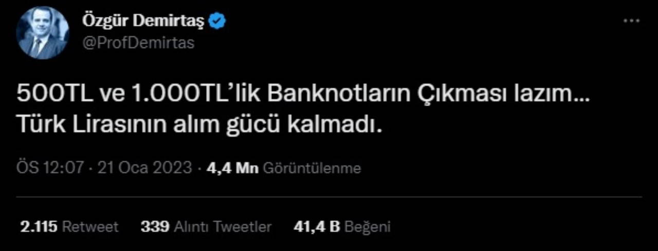 Ekonomist Özgür Demirtaş ise bu sebeple bir çağrıda bulundu. Demirtaş'ın bu paylaşımı sosyal medyada gündem oldu.