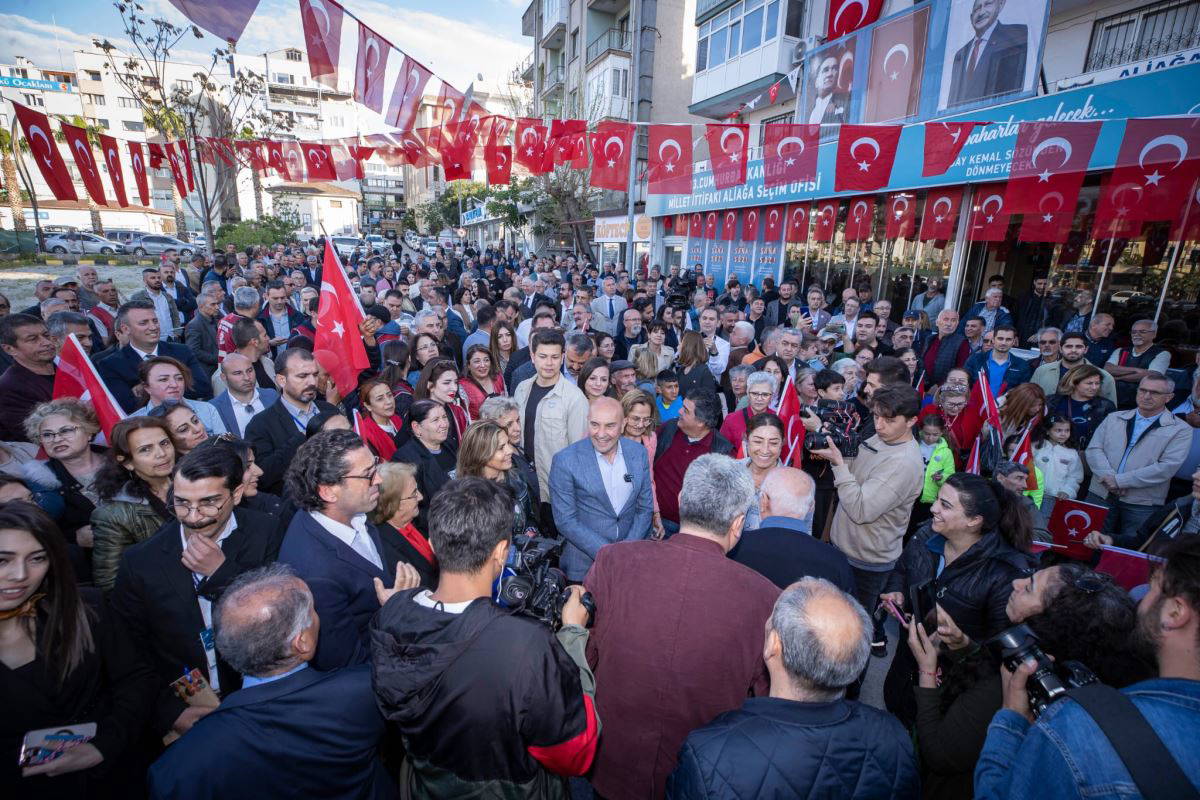 Seçim ofisi açılışında konuşan Büyükşehir Belediye Başkanı Tunç Soyer, Ramazan Bayramı'nın ardından 23 Nisan Ulusal Egemenlik ve Çocuk Bayramını da hatırlatarak, "23 Nisan'da Türkiye Büyük Millet Meclisi’nin (TBMM) kuruluşunun 103’üncü yıl dönümünü kutlayacağız. 23 Nisan 1920’de kurulan TBMM öncesi bir Amasya Kongresi var. Oradaki genelgede şöyle bir cümle var: 'Milletin bağımsızlığını yine milletin azim ve kararı kurtaracaktır.' Şimdi o azim ve kararlılığa yine ihtiyaç var. Çünkü o gün kurulan meclis, o günün koşullarında bizlere bu topraklarda huzurla, barış içinde el ele yaşayalım diye cumhuriyeti kurmuş. Şimdi bizim hem atalarımıza hem bizden sonra gelen kuşaklara borcumuz var. Cumhuriyeti demokrasiyle taçlandırmaya borcumuz var. Çünkü eğer cumhuriyet halktan yana, haktan yana iktidarlar üretirse işte o zaman yoksulluk, işsizlik, haksızlık, hukuksuzluk, adaletsizlik olmaz. Bunları sağlayacak olan şey demokrasidir. Demokrasi sadece 5 yılda bir sandığa gidip oy kullanmak değildir” ifadelerini kullandı.
