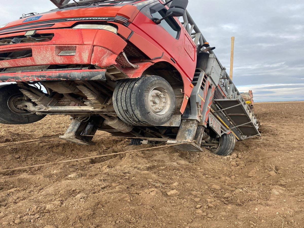 Afyonkarahisar'ın, Emirdağ ilçesine bağlı Aydınyaka köyü yakınlarında su kuyusu açan sondaj makinesi toprağın içine gömüldü.
