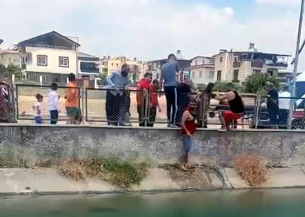 Çocuğun sulama kanalına atlama anı ise güvenlik kamarasına yansıdı.