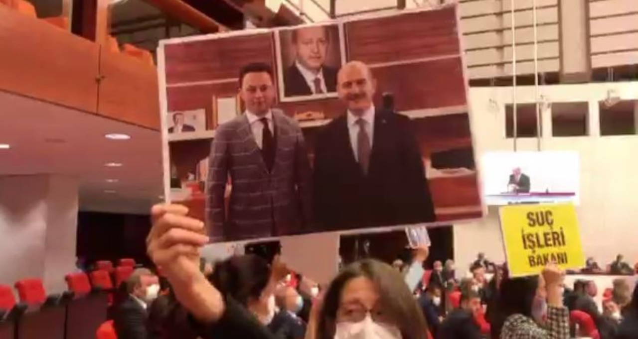Soylu'nun konuşma yaptığı sırada HDP'li vekiller dövizli protesto gerçekleştirdi. Dövizlerde 'Mafya iltisaklı bakan' yazdığı görüldü. Ayrıca Soylu'nun konuşması sırasında Genel Kurul'da tansiyon birçok kez yükseldi.