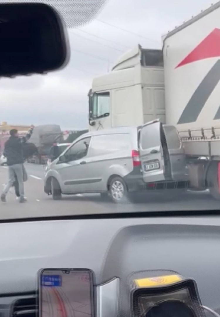 TEM Otoyolu Sultanbeyli mevkiinde, önceki gün saat 15.00 sıralarında, minivan araç sürücüsü ve TIR şoförü arasında yol verme nedeniyle tartışma çıktı. Tartışma kısa sürede kavgaya dönüştü.