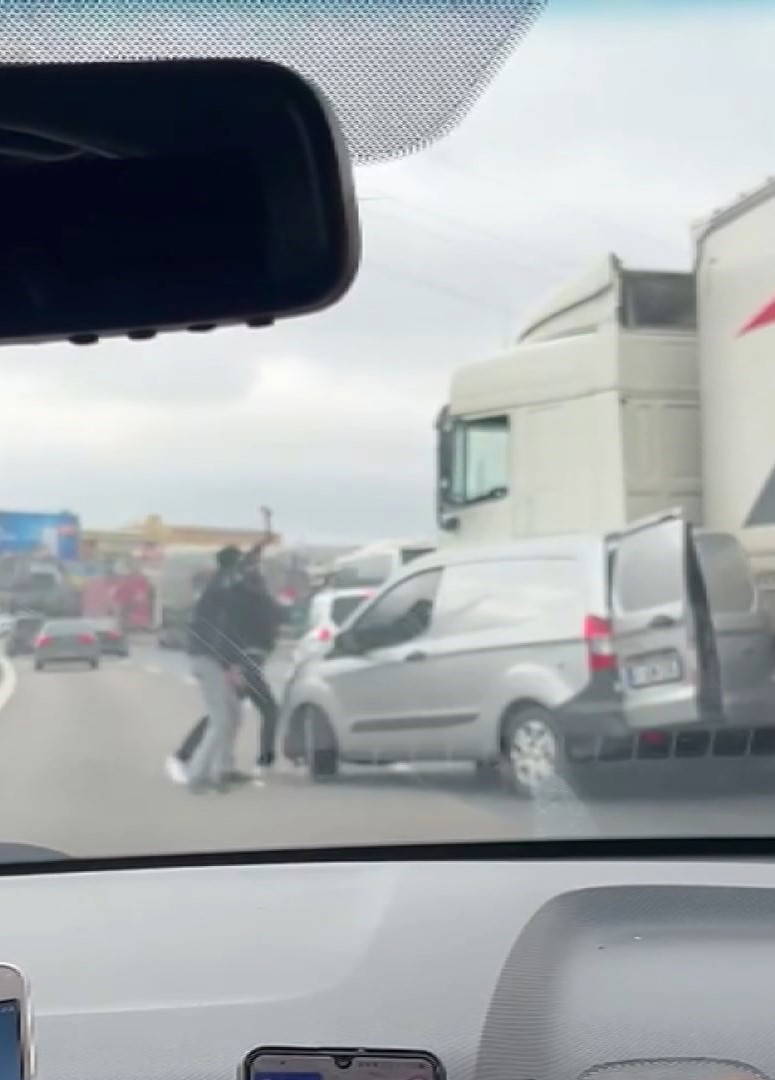 Otobanın ortasında yaşanan kavga cep telefonu kamerası tarafından anbean kaydedildi.