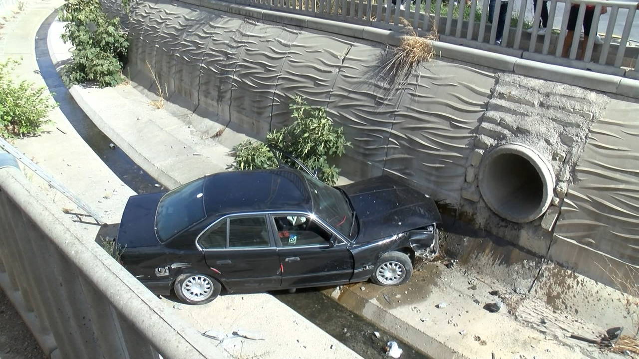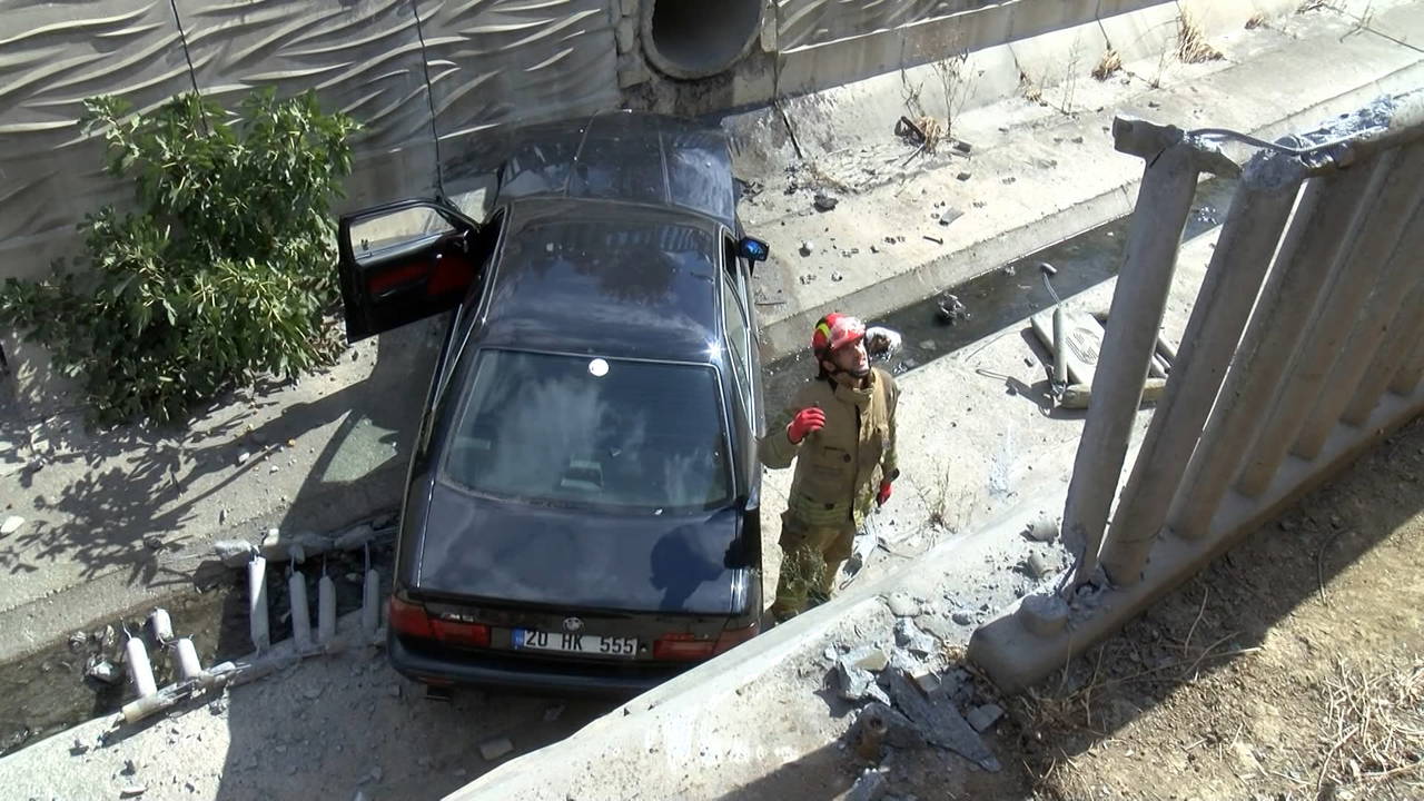 Su kanalına uçan otomobilden yara almadan kurtulan İbrahim Yuşa S. polis ekipleri tarafından ifadesi alınmak üzere karakola götürüldü.