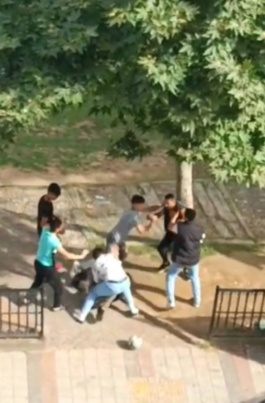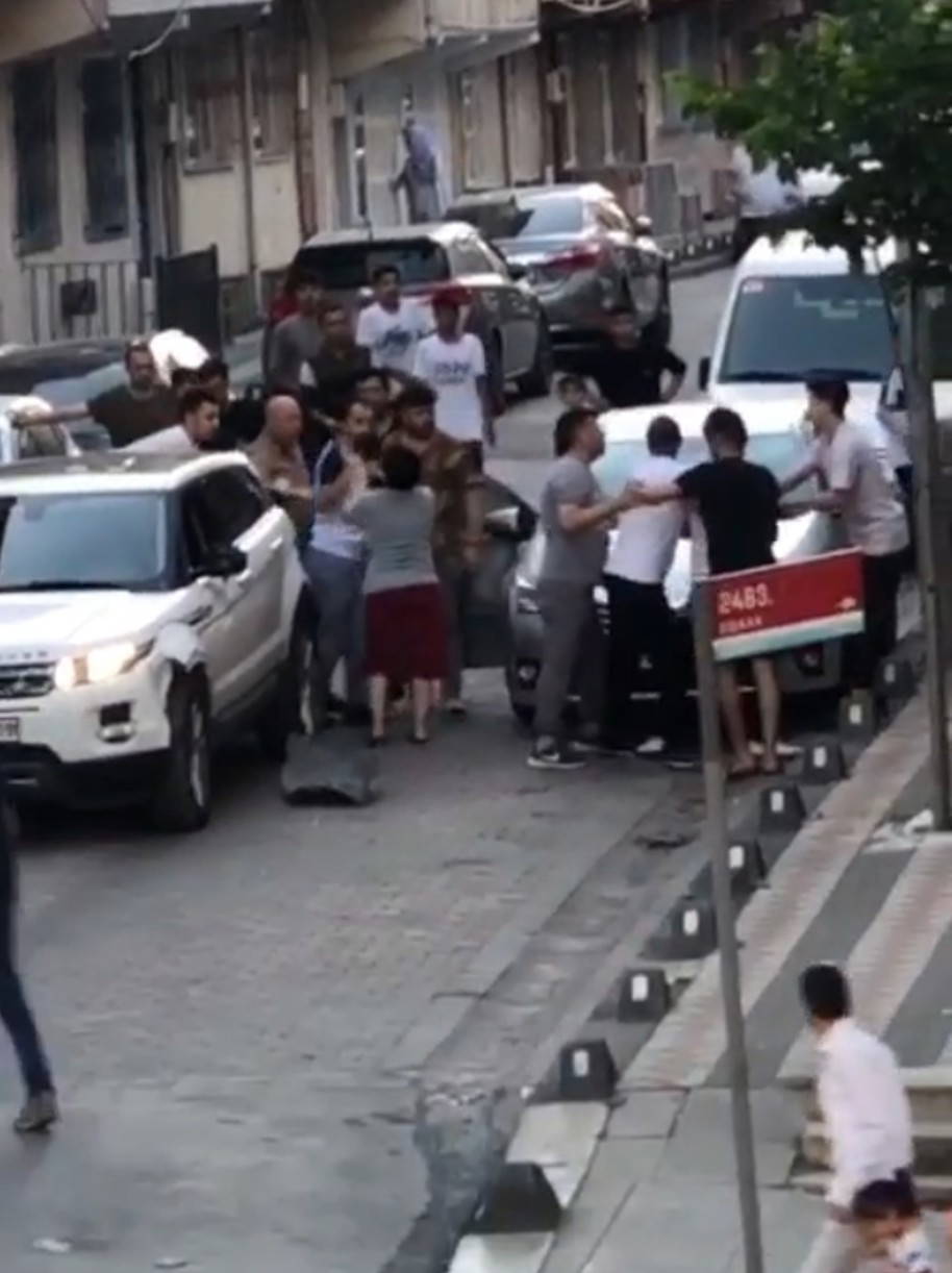 Parkta başlayan kavga yola sıçradı. Bazı sürücüler kornalarına basarak, taraflara tepki gösterdi.