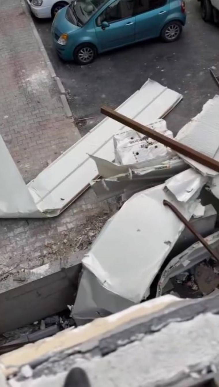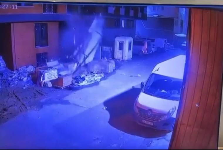 Sultangazi'de rüzgarın etkisiyle inşaat halinde bulunan bir binanın çatısı uçtu. Ölen ya da yaralananın olmadığı olay güvenlik kamerasına yansıdı.