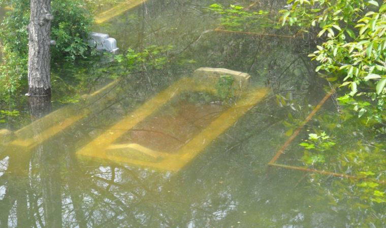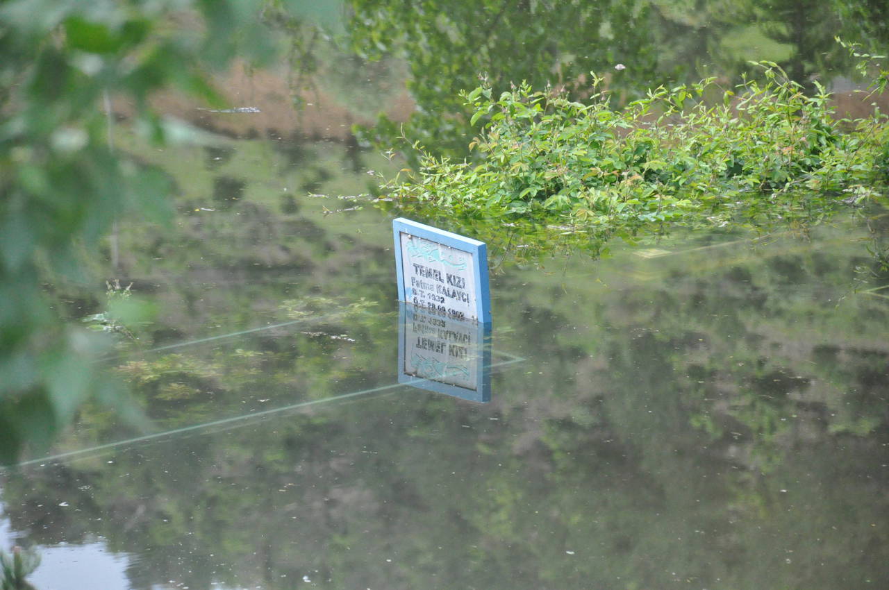 Çamlıca Mahallesi'ndeki mezarlık taşkın nedeniyle su altında kaldı. Mahalleli, 70’i aşkın çoğu sulara gömülen mezarın başka alana nakledilip ani taşkınlara karşı önlem alınmasını istedi.