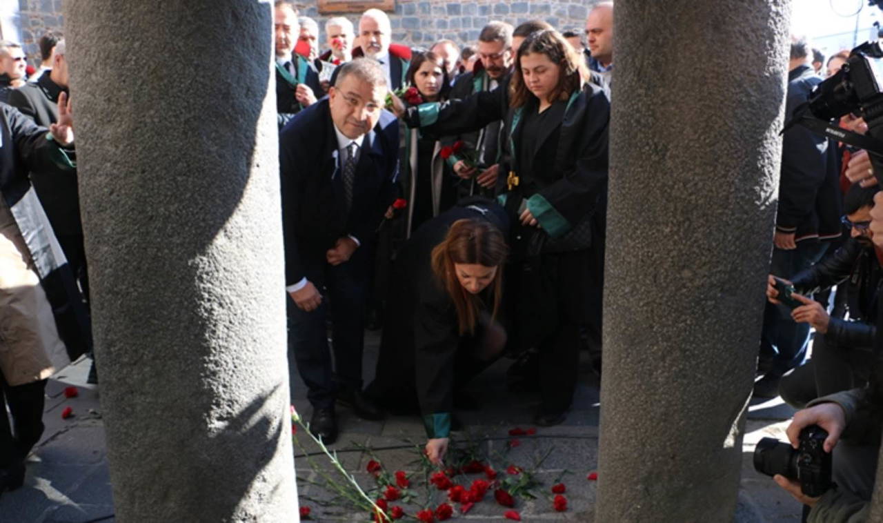 Konuşmaların ardından tarihi minarenin önüne Tahir Elçi anısına avukatlar tarafından karanfil bırakıldı.