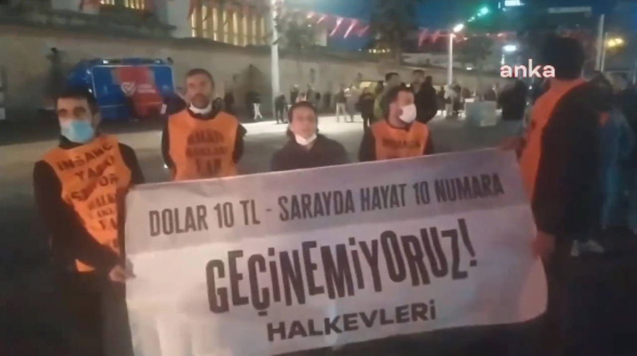 Halkevleri, Taksim Meydan’ında, “Dolar 10 TL Sarayda Hayat 10 Numara, Geçinemiyoruz” pankartı ile açıklama yapmak istedi.