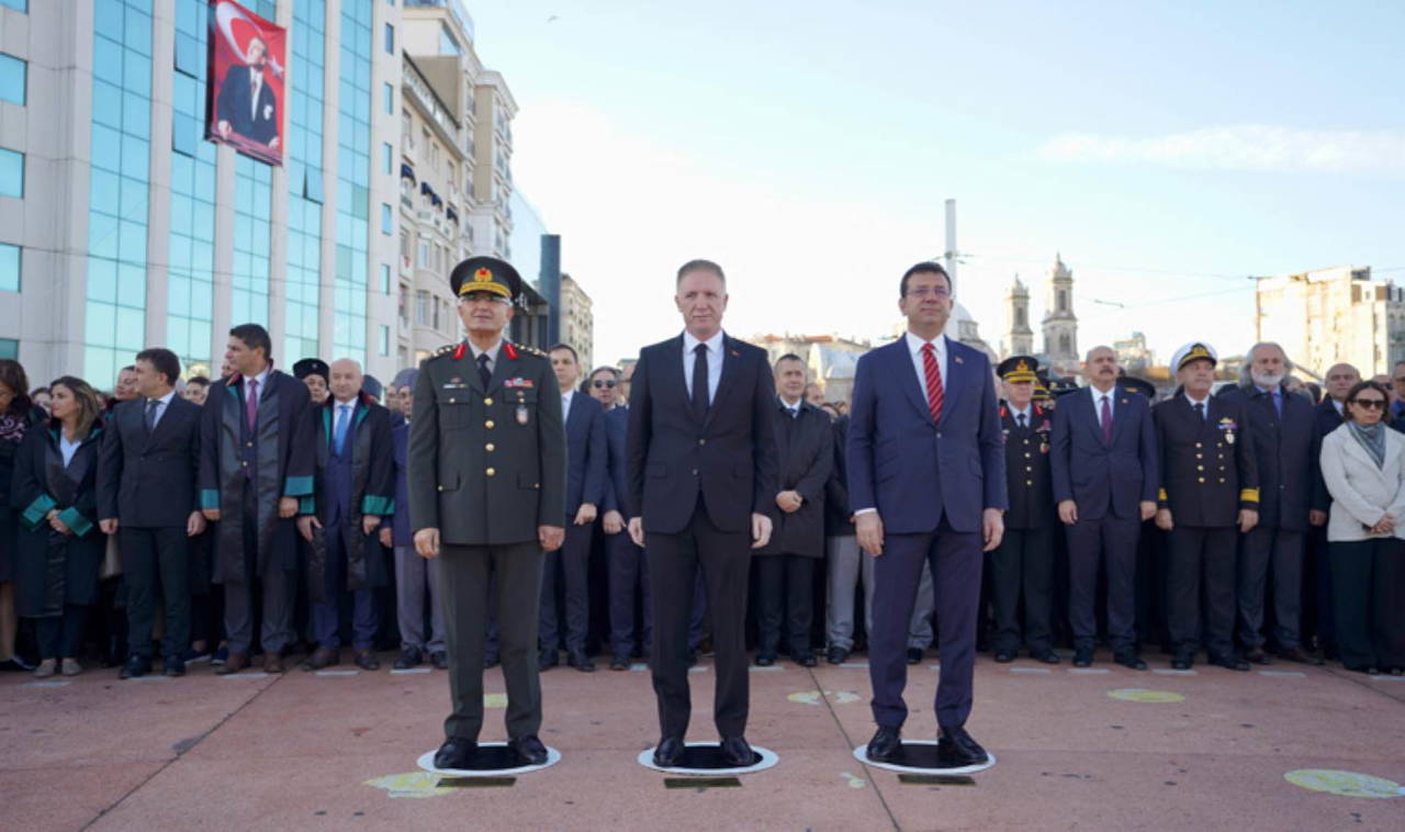 Atatürk için düzenlenen tören; İstanbul Valisi Ali Davut Gül, 1. Ordu ve İstanbul Garnizon Komutanı Orgeneral Ali Sivri ile İstanbul Büyükşehir Belediye (İBB) Başkanı Ekrem İmamoğlu’nun, kurumları adına Cumhuriyet Anıtı’na çelenk koymalarıyla başladı.