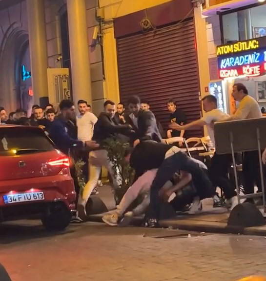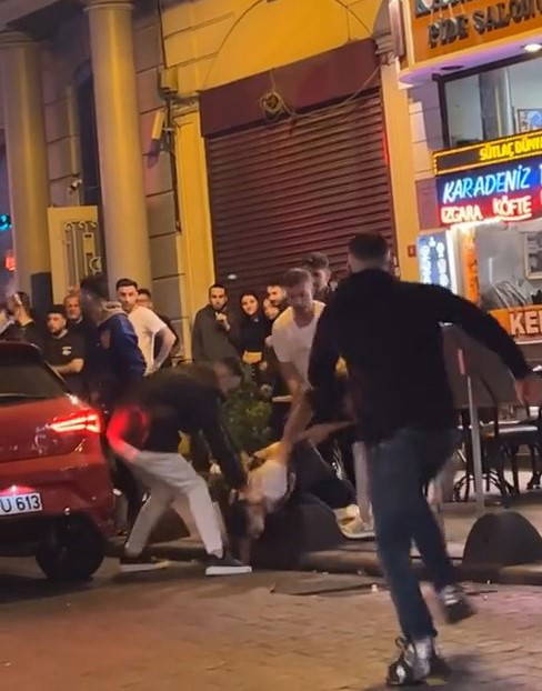 Taksim Kamer Hatun Caddesi üzerinde iki hafta önce sabah saatlerinde; gece kulübünden çıkan iki grup arasında henüz belirlenemeyen bir nedenle kavga çıktı. Tekme ve yumruklarla birbirine saldıranların kavgasına arkadaşları da dahil olunca iki grup uzun süre birbirlerini darbetti.