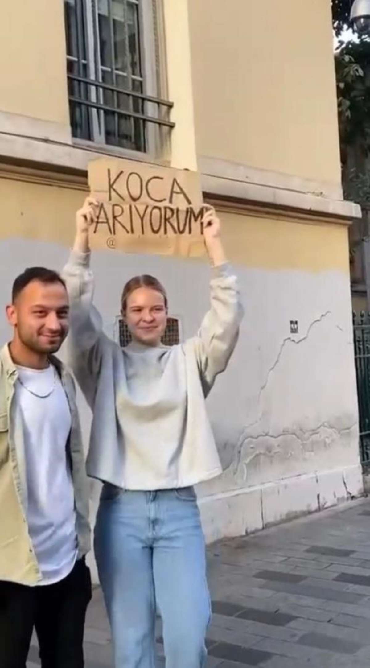 “Koca Arıyorum” yazılı dövizle uzun süre caddede tur atan Belaruslu kadın, kendisiyle fotoğraf çektirmek isteyen yurttaşlara poz verdi. Kadının sosyal medyasından da yaptığı paylaşım kısa sürede binlerce izlenmeye ulaştı. Yaşanan ilginç olay cep telefonu tarafından kaydedildi.