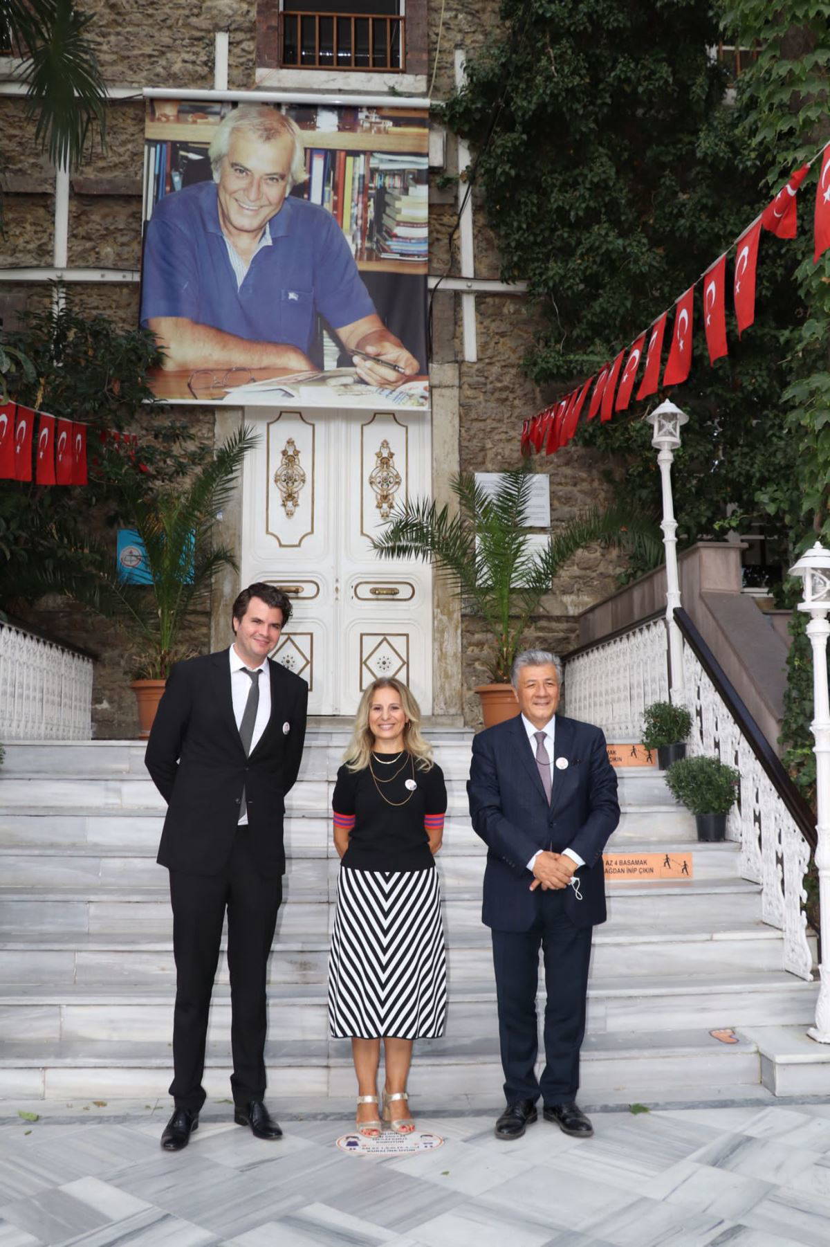 Oğlu Zeki Barış Üregül ve okul müdürü Melek Tuzluca ile Tarık Akan’ın okulunda.