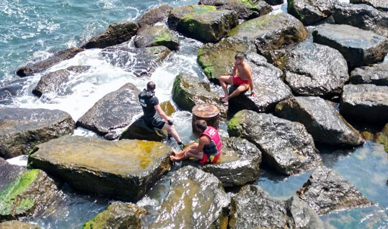 Hareketsiz cismin dalgakıranların arasına girerek kayalıklara takıldığını gören ekipler, kayalıklara çıktı. Görülen cismin atık varil odluğu anlaşılınca herkes rahat bir nefes aldı.