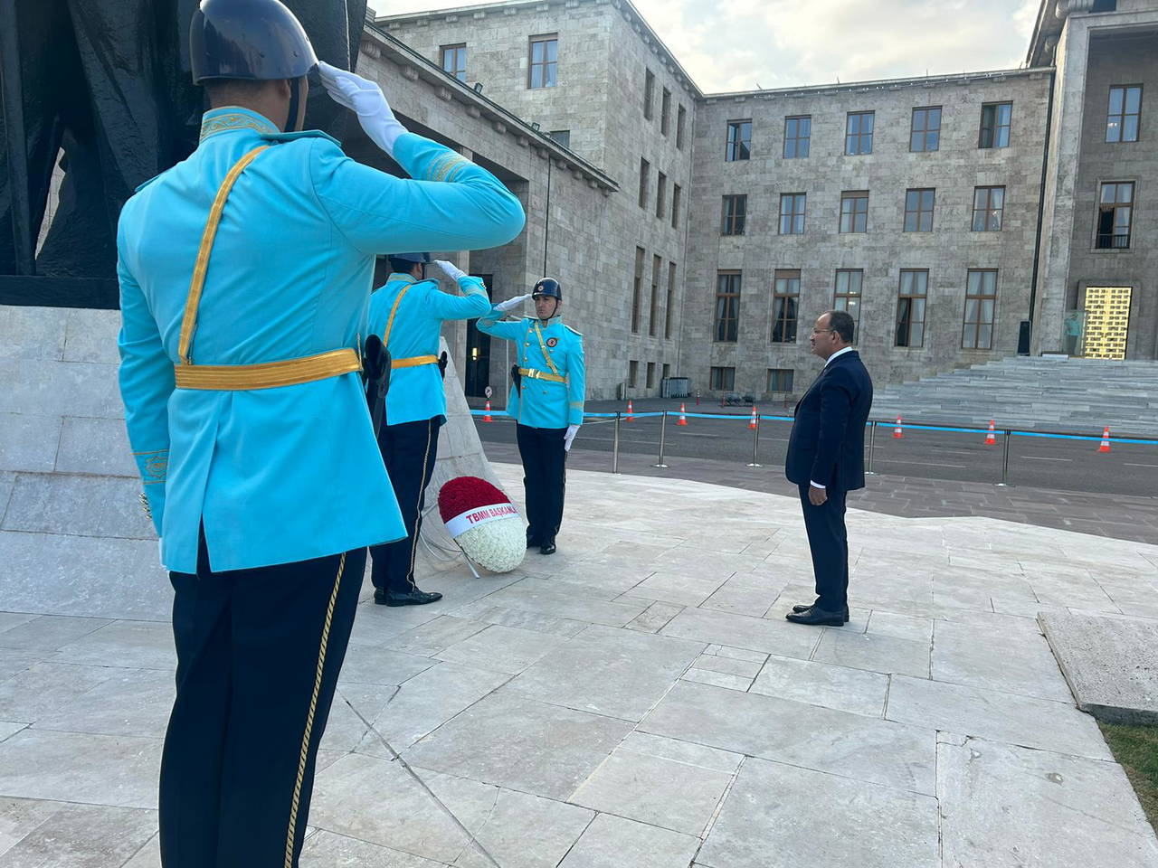 TBMM Atatürk Anıtı'nda düzenlenen törene TBMM Başkanvekili Bekir Bozdağ, İYİ Parti Grup Başkanvekili Erhan Usta, TBMM Başkanlık Divanı üyeleri, milletvekilleri, Meclis bürokratları ve çalışanlar katıldı.