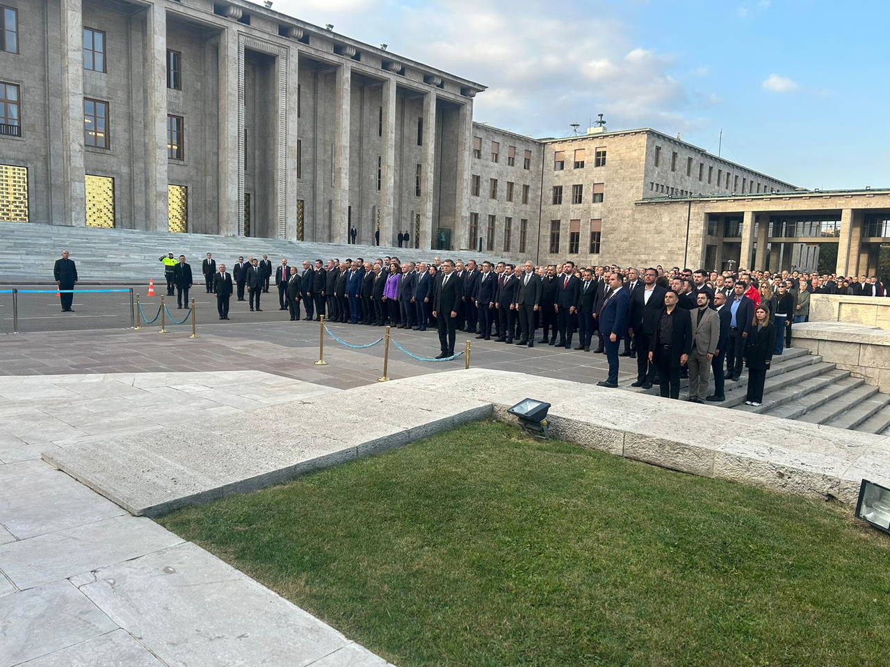 TBMM Başkanvekili Bozdağ, kırmızı ve beyaz karanfillerden oluşan çelengi Atatürk Anıtı'na bıraktı. Saat 09.05'te tüm yurtta olduğu gibi TBMM'de de çalan sirenlerle birlikte bayraklar yarıya indirildi ve Atatürk'ün hatırası için saygı duruşunda bulunuldu.