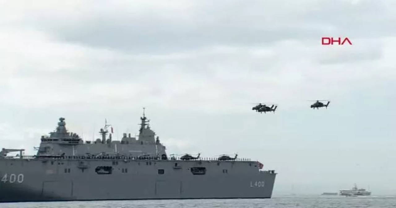 TCG Anadolu’ya boğaz geçişi sırasında helikopterlerin ve F-16’ların eşlik ettiği de görüldü.